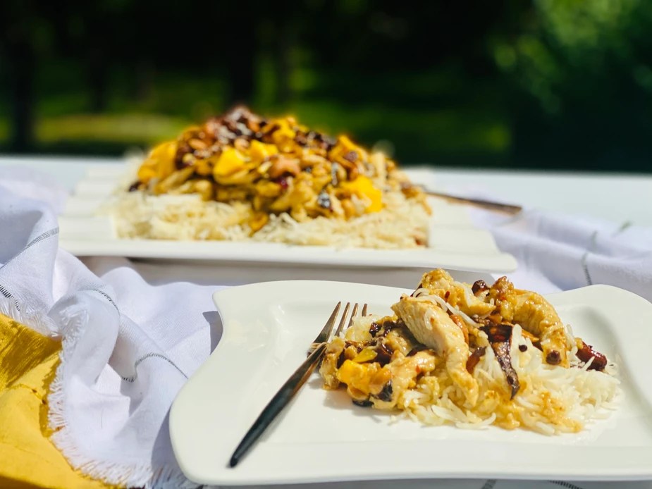 Mango Chicken and Rice is one of those really unique dishes that none of us are quite sure where it originated from. My mom says it's Burmese, my sister says it's Continental, my aunt says Anglo Indian but the honest truth is that none of us really know for sure. The flavors in this dish are wildly delicious and unique and it makes for a very interesting dinner conversation. I’m a huge mango fan so anything with mango in it is automatically delicious in my book. I’m sure once you try it, you guys are going to love it as much we do.